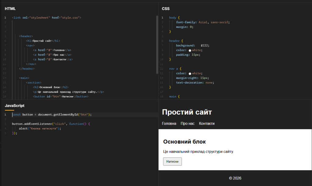 <p>Це навчальний приклад структури сайту.</p>