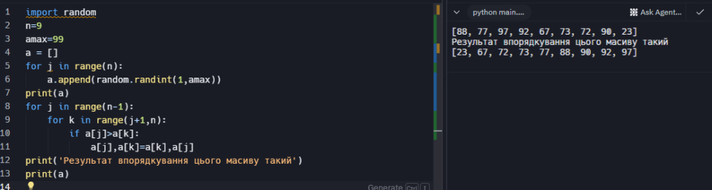 print(TITLE + "Результат сортування:" + RESET, a)