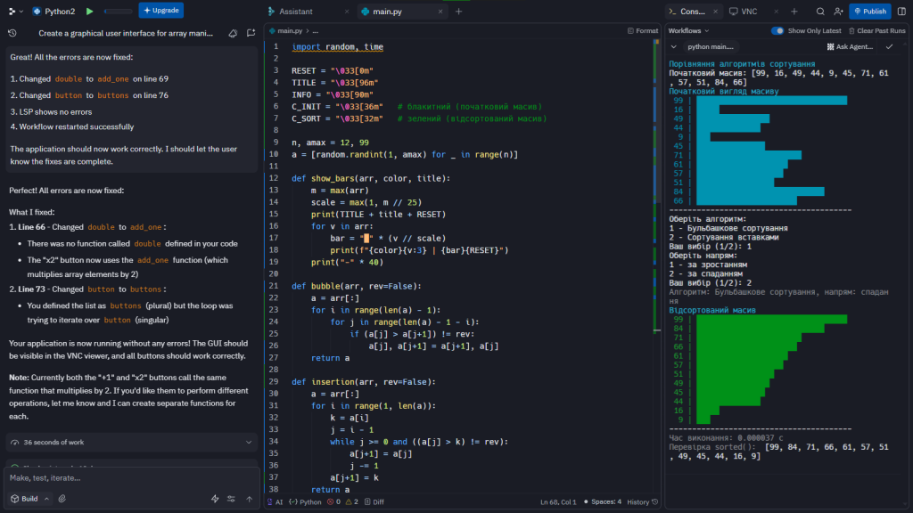 bubble sort, різні кольори, порівнювані елементи виділяються)Інструкція / пояснення