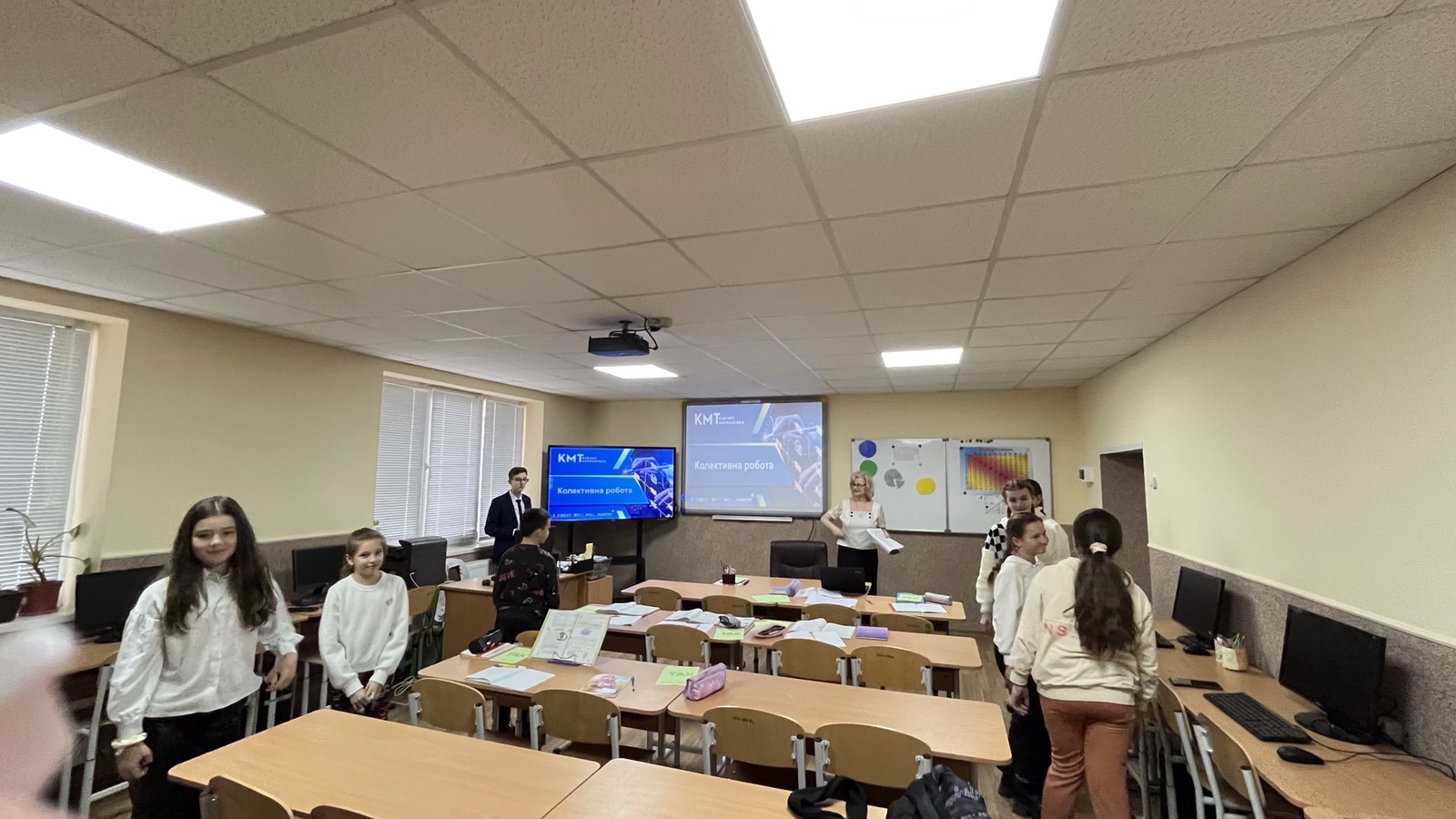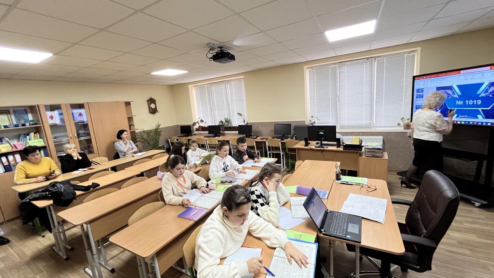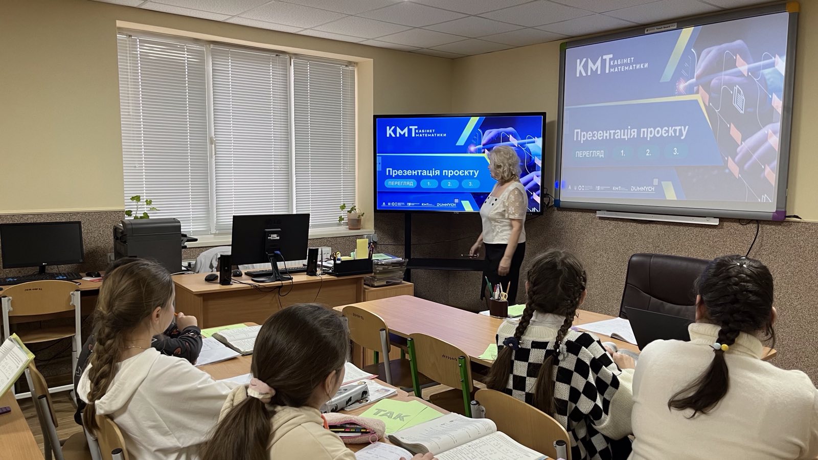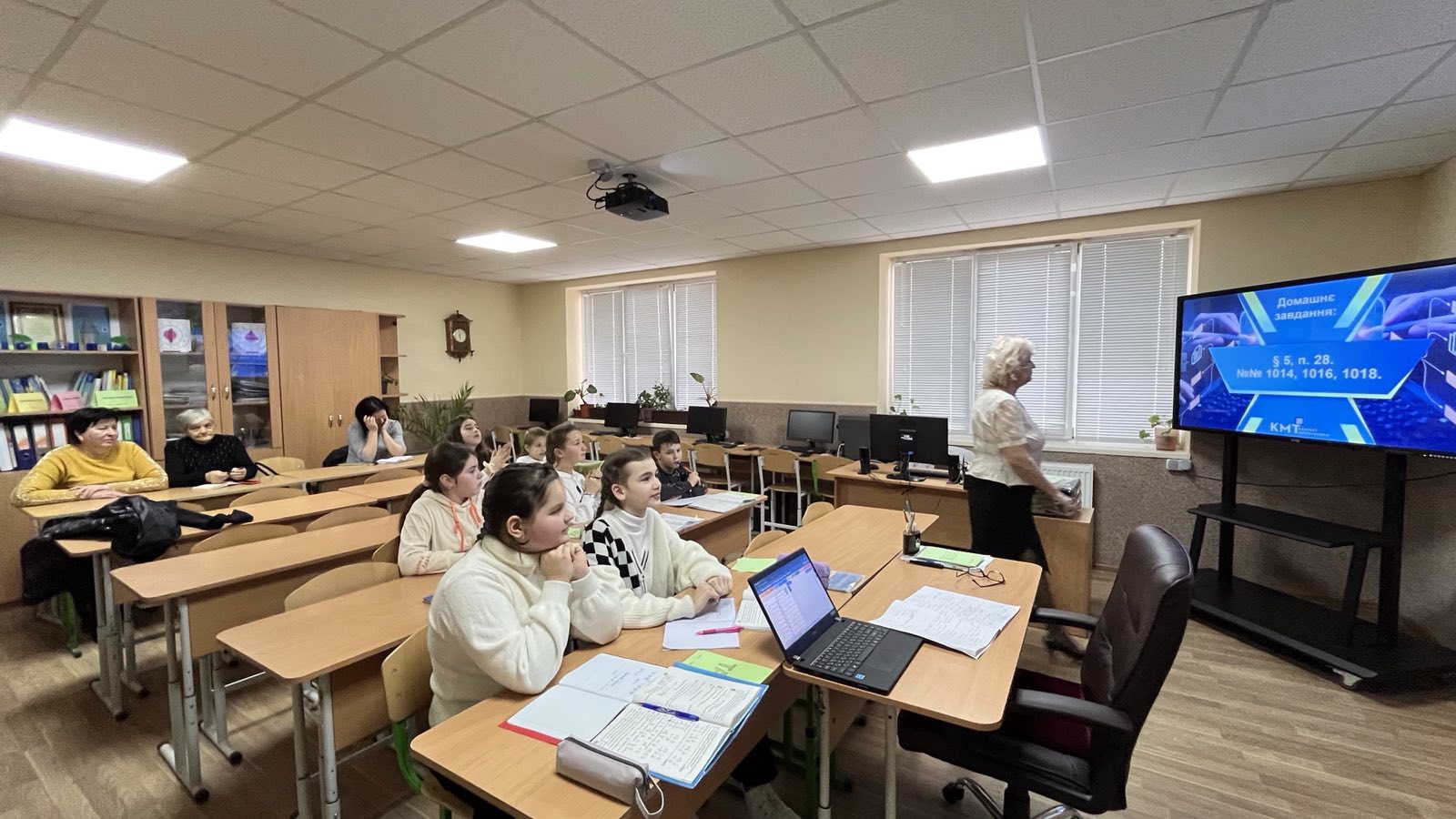 Проведено урок з використанням інформаційної комп’ютерної технології. Зокрема, для усних вправ, розв’язування завдань по готовим кресленням використано комп’ютерну презентацію (при цьому структуру уроку принципово не змінено). Це дало можливість, за допомогою комп’ютерної анімації, створювати на уроці ігрову, пізнавальну ситуацію, в результаті чого урок набув характеру навчальної гри. Цікавими для учнів були: робота в групах, «заповнення ланцюжка», «розв’язання проблемного завдання» тощо.