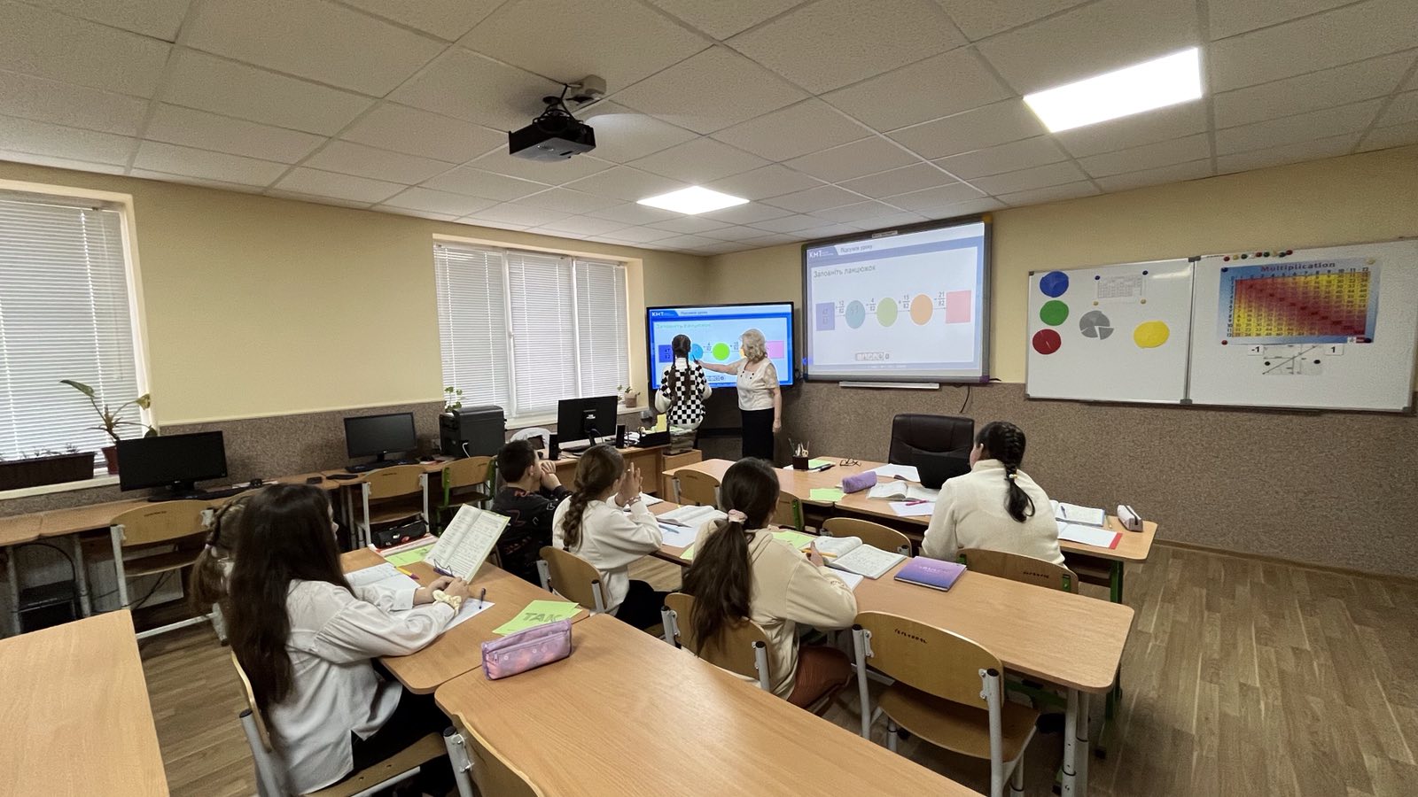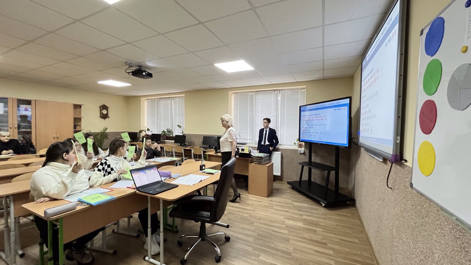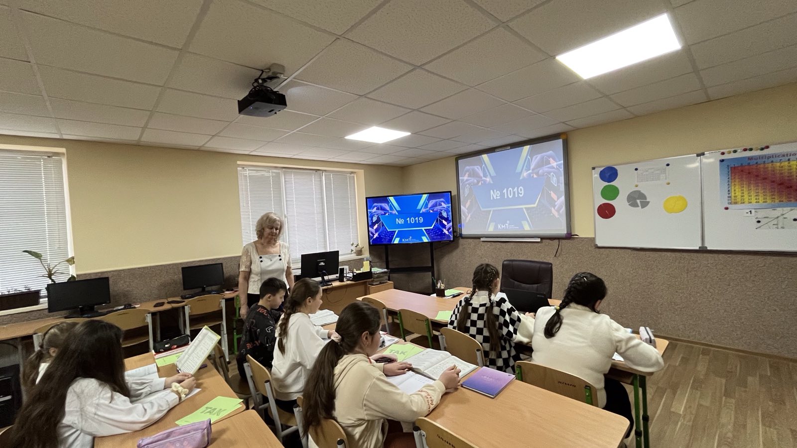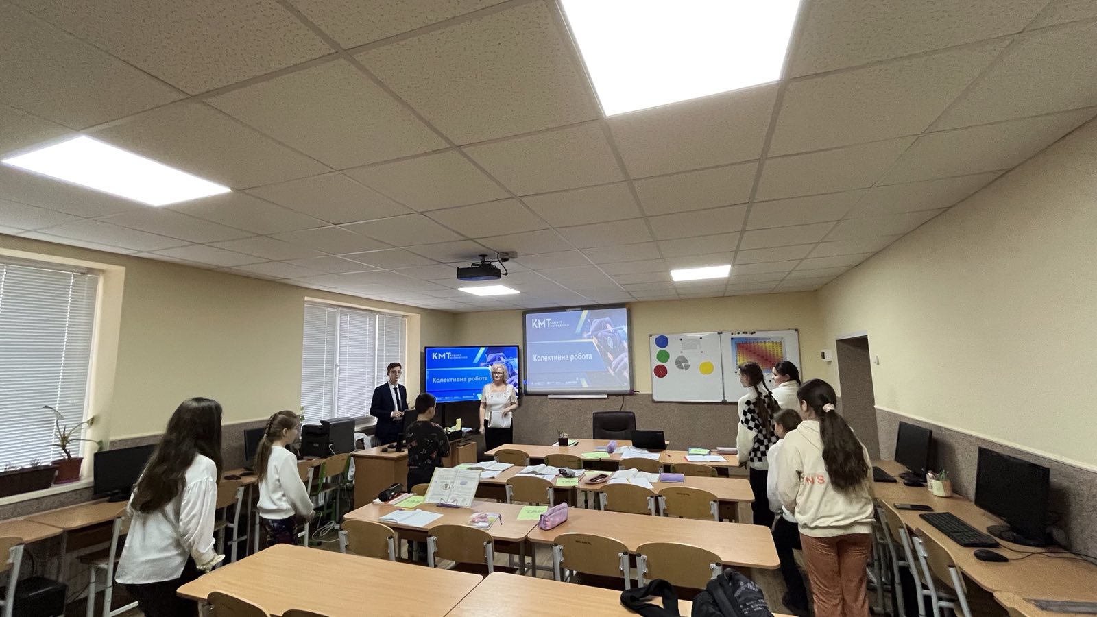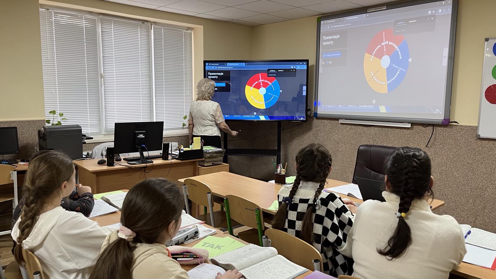Проведено урок з використанням інформаційної комп’ютерної технології. Зокрема, для усних вправ, розв’язування завдань по готовим кресленням використано комп’ютерну презентацію (при цьому структуру уроку принципово не змінено). Це дало можливість, за допомогою комп’ютерної анімації, створювати на уроці ігрову, пізнавальну ситуацію, в результаті чого урок набув характеру навчальної гри. Цікавими для учнів були: робота в групах, «заповнення ланцюжка», «розв’язання проблемного завдання» тощо.
