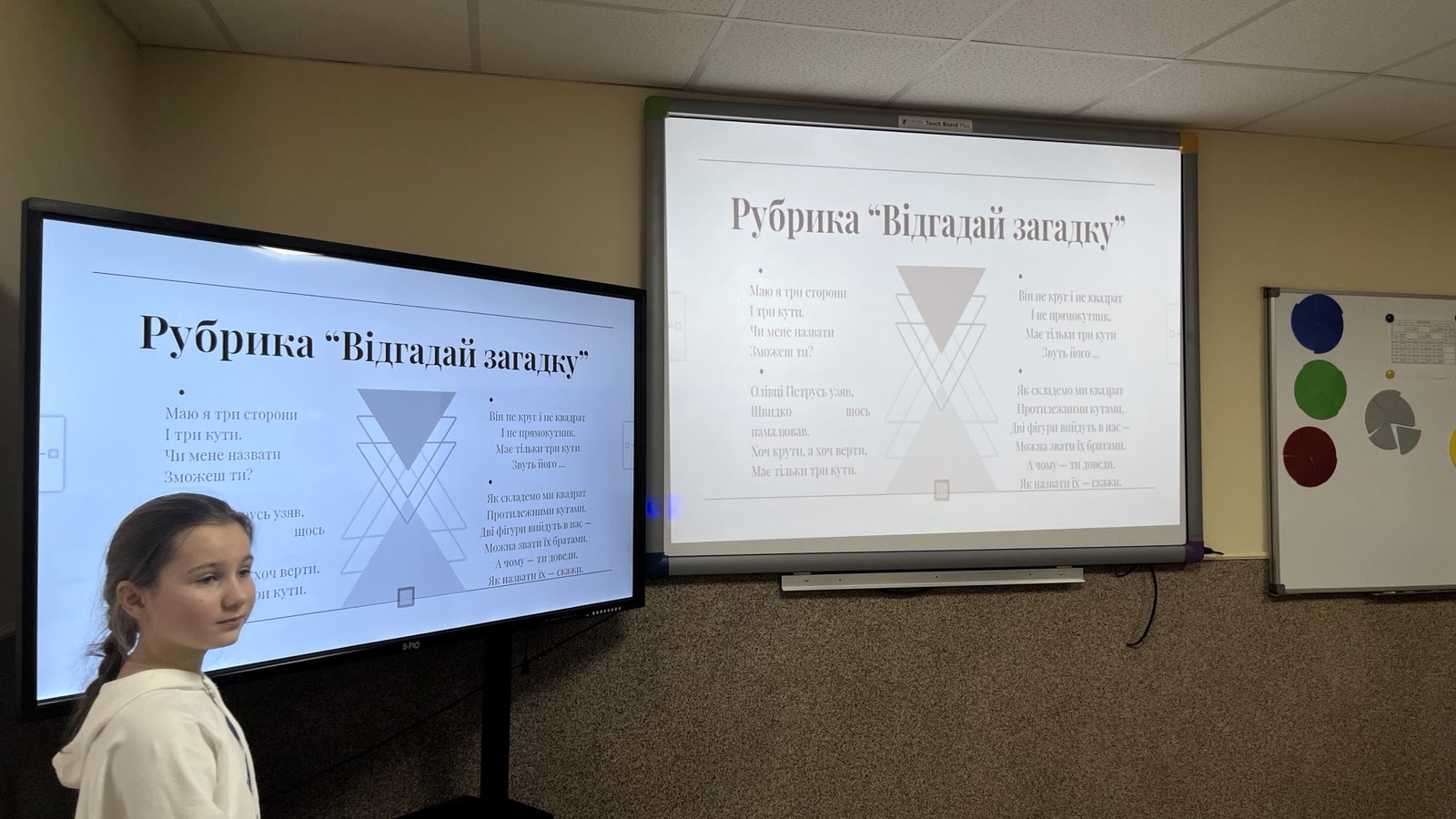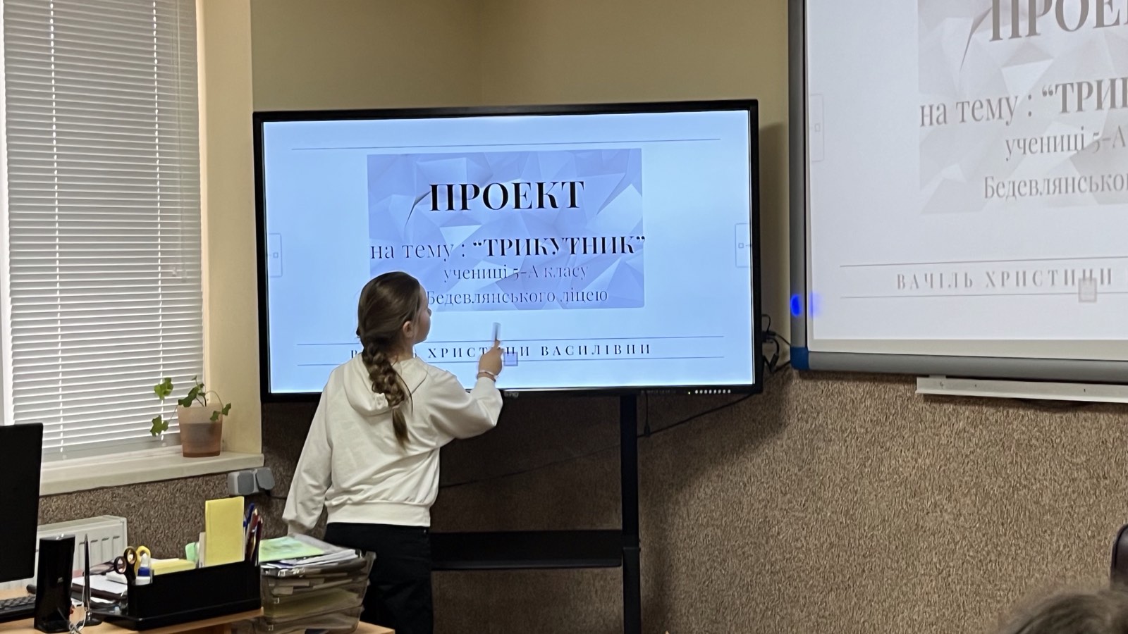 На завершенні уроку, всі присутні мали можливість ознайомитися з проєктом на тему «ТРИКУТНИК», який підготувала і презентувала учениця 5-А класу Вачіль Христина.