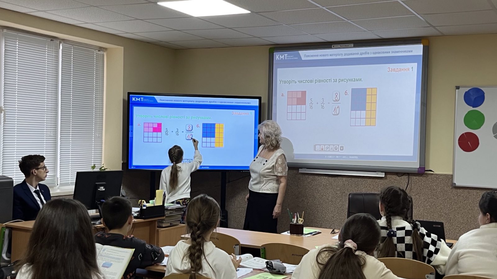 Нещодавно відвідала урок з математики в 5-А класі на тему «Додавання і віднімання дробів з однаковими знаменниками» (вчитель Думнич Марія Василівна).